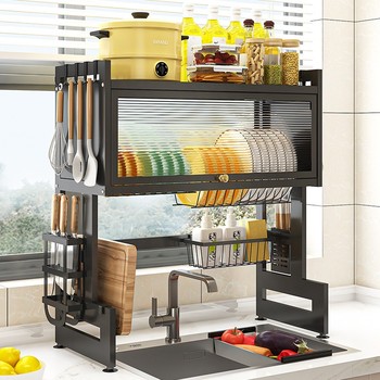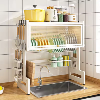 Gabinete de almacenamiento ajustable para fregadero, estante de secado de platos a prueba de polvo para encimera de cocina