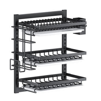 Estante de secado de platos montado en la pared Estante de almacenamiento de cocina multicapa para platos Cuencos Utensilios con drenaje