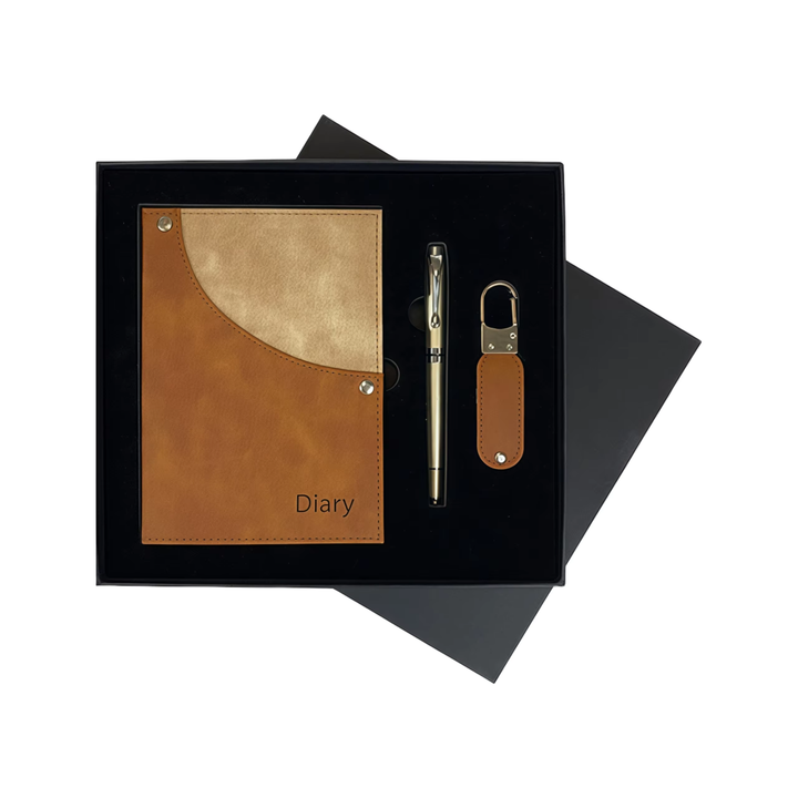Venta caliente de cuatro piezas caja de regalo de negocios conjunto cuaderno con logotipo hebilla tarjetero llavero Bloc de notas para ocasiones de Año Nuevo