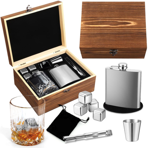 Venta directa de fábrica Juego de vasos de whisky Caja de madera de lujo para Año Nuevo Navidad Pascua Incluyendo piedras de cubitos de hielo Juego de Regalo perfecto