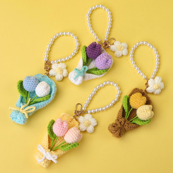 Novedad hecha a mano suave punto tulipán ramo colgante ganchillo ramo bolsa encanto llavero para Navidad Acción de Gracias regalo Idea